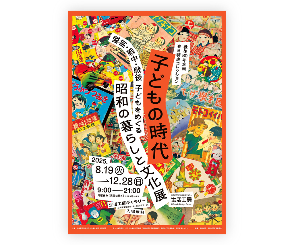 太平洋戦争の終戦から80年、世田谷区の平和都市宣言から40周年を迎える本年度、生活工房では「子どもの暮らし」と「平和」について考える展覧会が開催中。