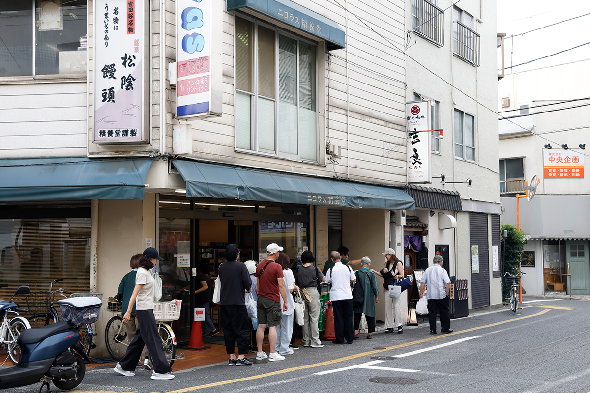 東急世田谷線の松陰神社前駅に降りると、踏切のすぐ脇に見える「ニコラス精養堂」。店の前を通るたび、ふらりと立ち寄りたくなる昔ながらのパン屋さんだ。店内には、松陰あんぱんやクリームパン、ちくわパンといった多様なパンがずらりと並び、ガラスケースにもシュークリームやショートケーキ、色とりどりのゼリーなど目移りする品揃え。豊富なラインナップにワクワクしながらも、ほっとするような安心感を覚えるのは、私だけではないような。