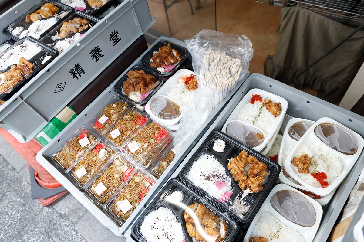 「お弁当をはじめたのはコロナのときです。学校の閉鎖に伴って学食の営業が停止してしまって、でもスタッフにはお給料を払ってあげたいし、何かできないかなと思って、店頭での販売をはじめたんです。学食で人気の唐揚げやソースかつ丼といったメニューはもちろん、こちらは年配の方も多いので、野菜をプラスしたり、彩りに工夫を凝らしたりしながら提供しています」